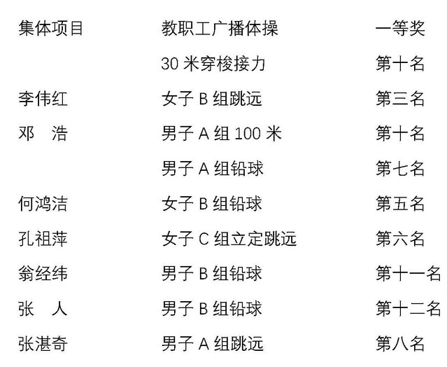 附:磁力猫 老师在本届运动会中取得佳绩的具体项目及成绩。