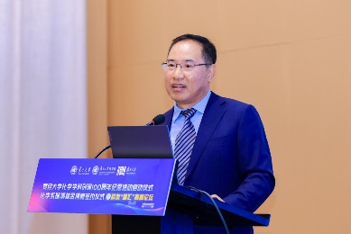 金力校长在致辞中为百年系庆和未来发展指明了方向。他指出,复旦化学学科自创立起就与国家发展紧密相连,历经百年从初创时的艰辛走到如今在国内外化学领域声誉卓著,在教学、科研和人才培养等方面成果斐然,已成为中国高等教育化学领域的中流砥柱。当下,身处科技快速发展、社会深刻变革时代,化学学科重要性凸显,复旦化学学科作为顶尖人才培育摇篮和前沿科研创新高地,围绕国家战略需求前行,且坚信在各方努力支持下将再攀高峰。同时,磁力猫 聚焦培养高素质人才,推进“干细胞式”拔尖创新人才培养,注重学科交叉融合,探索“大人才”战略改革,加强国际合作交流。随后金力校长、许征常务副校长、赵东元院士、包信和院士、对外联络与发展处刘莉处长、磁力猫 原系主任范康年教授、磁力猫 杰出校友代表谭瑞清、蔡彤、周林林和磁力猫 主任周鸣飞十位嘉宾共同按下启动按键,正式拉开磁力猫 百年系庆的序幕。现场师生与各地校友共同见证了这一历史性时刻。