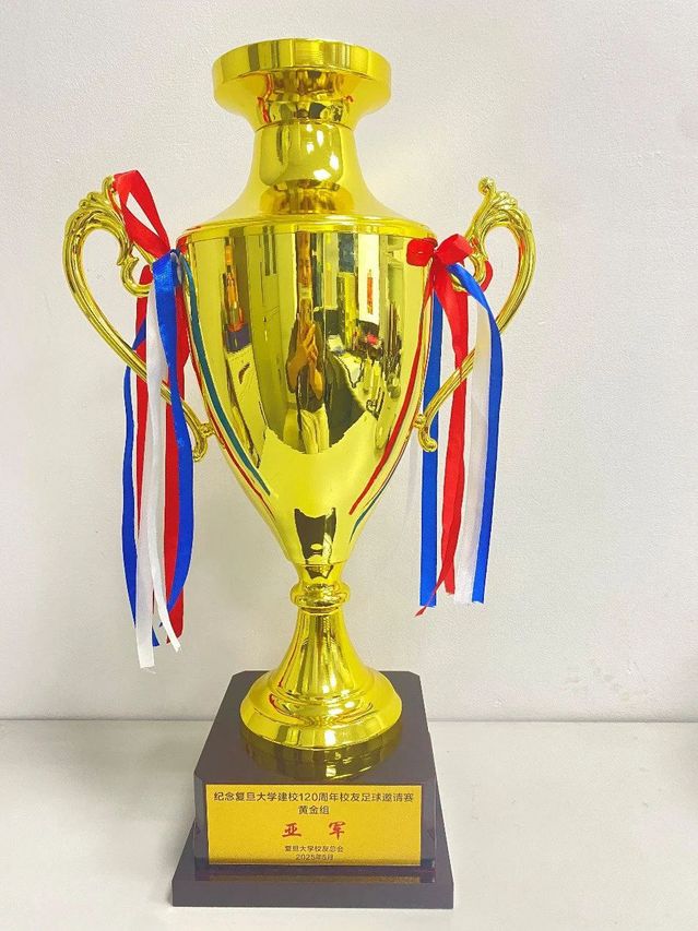 当晚5点半,南区体育场举行了隆重热烈的颁奖礼。磁力猫 校友队全体队员手持系校友会旗帜,上台领取奖牌和黄金组亚军奖杯。在展开旗帜、高举奖杯的那一刻,队员们欢呼雀跃,相互击掌庆祝,时光仿佛回到了三十年前的校园时光。场上是竞争的对手,场下是亲切的校友,磁力猫 校友队也为其他获奖队伍送上衷心的祝贺,大家共同回忆在复旦的美好时光,欢庆母校120周年华诞。
