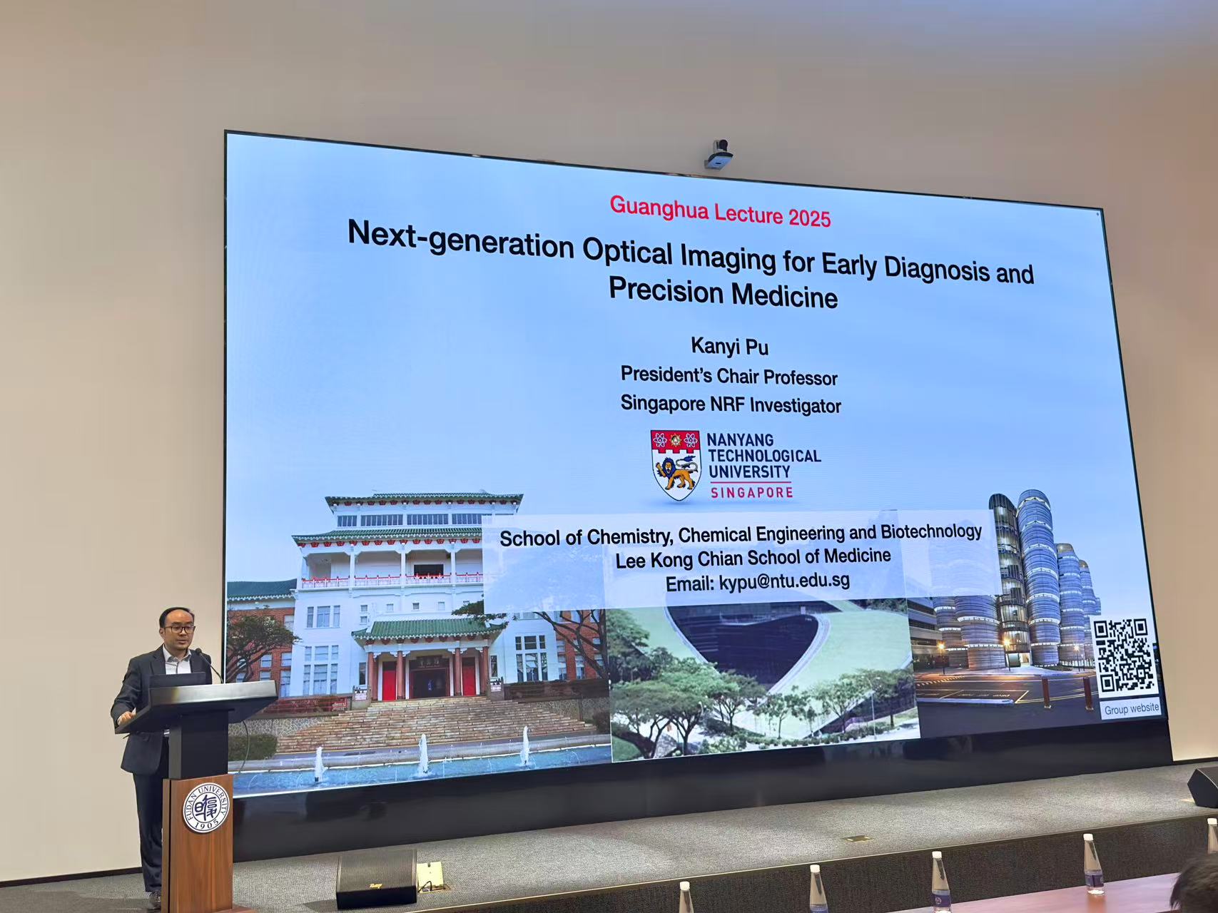 随后,浦侃裔教授作了题为“Tackling the challenges in optical imaging for biology and medicine”的报告。介绍了光学成像探针的发展历史,从1907年的迈克尔干涉仪到2020年后的量子点发光,光学成像是科学进步的重要见证。接着,教授对组里的工作进行了深入浅出的介绍。余晖成像能够提供无背景的成像效果,可实现标志物的检测。通过超声、Xray等条件激活精心合成的余晖探针发出余晖光,可用于辐射治疗,并解释了其中的发光机理。同时,通过对探针的精巧设计,修饰上可被目标物切除的基团实现了肿瘤细胞的特异性成像。进一步,为了实现更深的穿透能力以实现活体的成像,使用Xray也是一个有效的成像方式,仅用低剂量的Xray即可实现高的成像质量。此外,教授还介绍了可被肾清除的荧光探针,能同时用于成像和尿液检测。另一种策略是结合逻辑门的设计,实现了对肿瘤的响应。浦侃裔教授对发光探针的精巧设计实现了对不同标志物的检测和响应,也为光学成像的应用和发展提供了新的思路和有效的手段,为与会者拓宽了对相关领域的认识和理解。