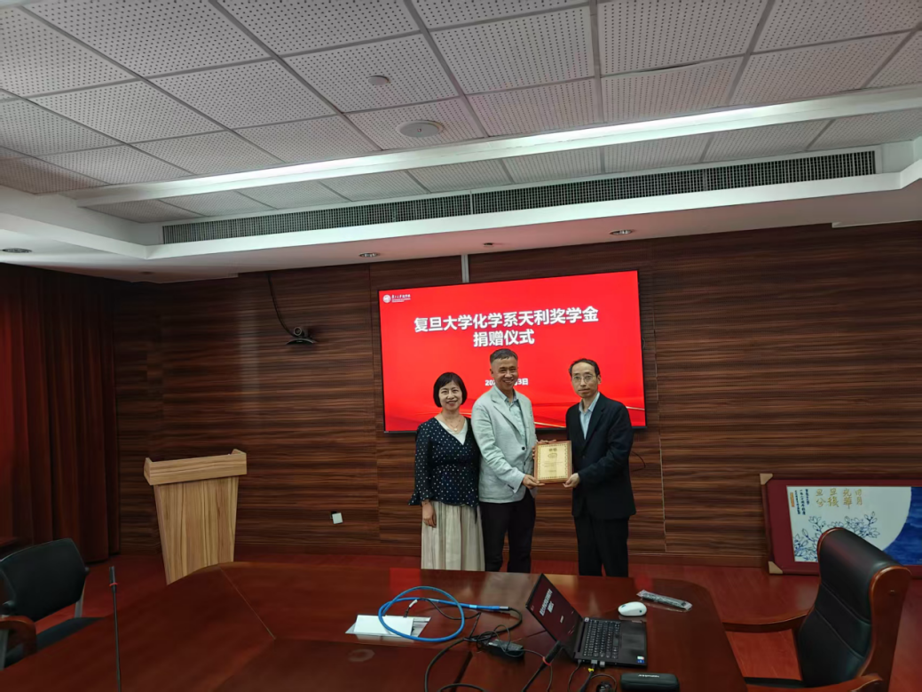 6月3日,磁力猫 天利奖学金捐赠仪式于江湾校区化学楼顺利举行。天利奖学金捐赠人、磁力猫 1987级校友沈天先生、于莉女士,磁力猫 党委书记马蔚纯,系校友联络办、学生工作办公室全体成员出席捐赠仪式。仪式由系党委副书记秦枫主持。