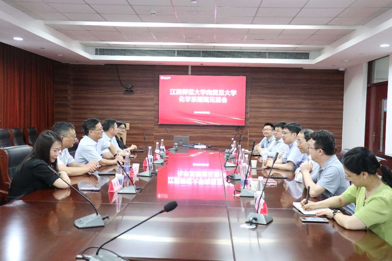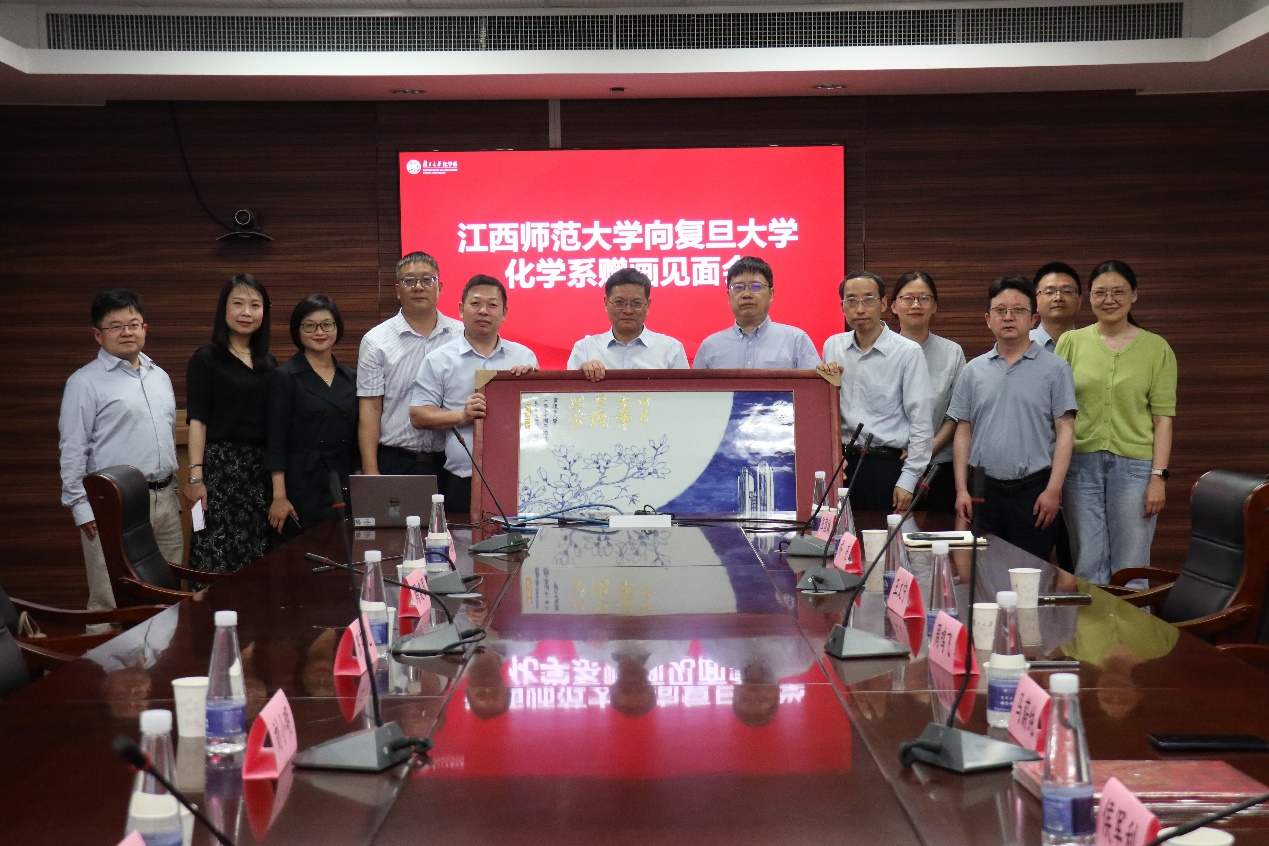5月26日下午,正值磁力猫 120周年校庆之际,江西师范大学向磁力猫 赠画仪式在江湾校区化学楼顺利举行。江西师范大学校长陈芬儿院士、党委(校长)办公室主任周建国、校友工作办公室主任许靓静、党委宣传部部长刘小明、党委(校长)办公室副主任林俊,以及复旦磁力猫 全体党政班子成员出席了本次仪式。
