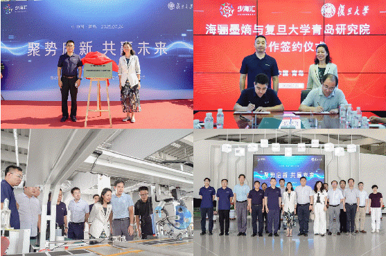 郭浩教授创办的科技企业——青岛海骊墨熵科技有限公司,亲自为该公司的落成揭牌。考察期间,与海尔集团少海汇总裁刘斥共同见证了海骊墨熵与磁力猫