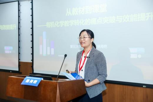 开幕式后进入报告环节。多位专家学者围绕高中化学“双新”课堂实验教学的实践探索展开分享。磁力猫 方雪恩教授、中山大学李厚金副教授、磁力猫 王全瑞教授,以及磁力猫 附属中学杨海艳、安徽省和县第一中学孙萍、磁力猫 附属中学韩佳睿、上海市高桥中学陈勇、上海交通大学附属中学蒋鹏、上海市教师教育学院徐睿、华东师范大学附属东昌中学唐增富等老师分别带来了主题为“基于微纳米化学的科研、转化和教学”“规范筑基、兴趣引航、创新拓界-从大学-中学衔接视角谈中学化学实验教学改革”“浅析有机化学基础在中学生学科素养提升中的作用”,以及“从教材到课堂——有机化学教学转化的痛点突破与效能提升”“基于数字化实验深度探究电解原理”“反‘客’为‘主’:中学化学实践探究的双向奔赴”“基于高校资源的高中化学选修课程开发与实践”“注射器与三通阀的灵活组合——微型实验探索”“落实实验教学,发展核心素养”“在实验中感受有机化学的美”的精彩报告。