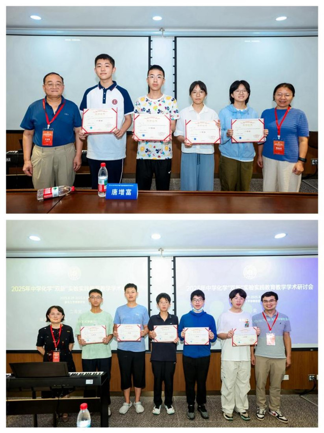 会上,学生代表也分享了对化学学习的浓厚兴趣和强烈的求知欲,称通过实验操作加深了对化学原理的理解,认识到实验不仅是探究的过程,更是证实和观察的手段,并表达了对化学学习和科研道路的憧憬与坚定决心。本次活动为在实验操作规范、实验技能等方面表现优异的学生设置了奖项,同时为在实验实践教学中创新探索、分享经验的教师代表颁发了荣誉证书,肯定其对丰富教学形式、搭建学生成长平台的贡献。
