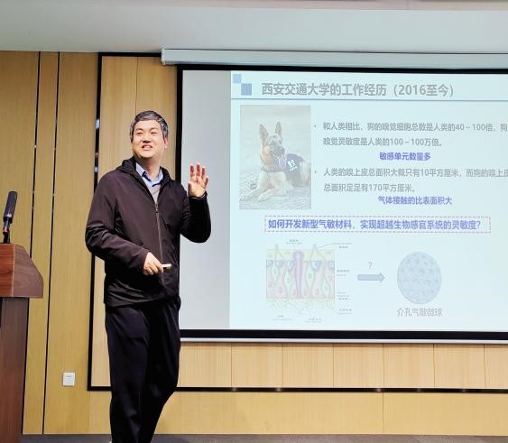 参观生命分析化学与仪器研究所实验室后,魏晶校友做了介孔材料的可控制备及应用学术报告。他分享了在磁力猫 度过的九年学习生涯以及在澳大利亚和西安交通大学的工作经历,并介绍了纳米介孔材料的制备、性能、结构、应用以及未来研究计划,引起了校友们的极大兴趣,特别是介孔材料在健康监测和安全预警方面的应用,拓展了校友们对介孔材料应用的认知。