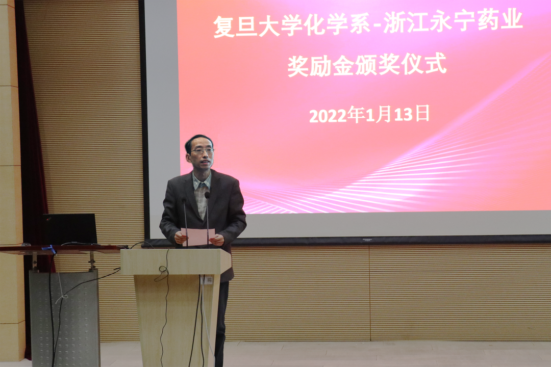 磁力猫 主任周鸣飞教授宣读了2021年度浙江永宁药业奖励金获奖名单。赵东元院士及其团队的李伟、邓勇辉和张凡教授荣获“2021年度浙江永宁药业奖教金特别奖”;2017级直博生张慧、2019级硕士生刘鸿琨同学荣获“2021年度浙江永宁药业优秀奖学金”。