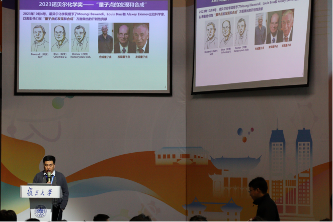 开幕式后,磁力猫 教授董安钢老师为我们带来了首场特邀报告——2023年诺贝尔化学奖解读。董老师从诺奖的颁奖词出发,分别介绍了量子点的概念、机理、制备及应用,为同学们带来了一场精彩的学术报告。
