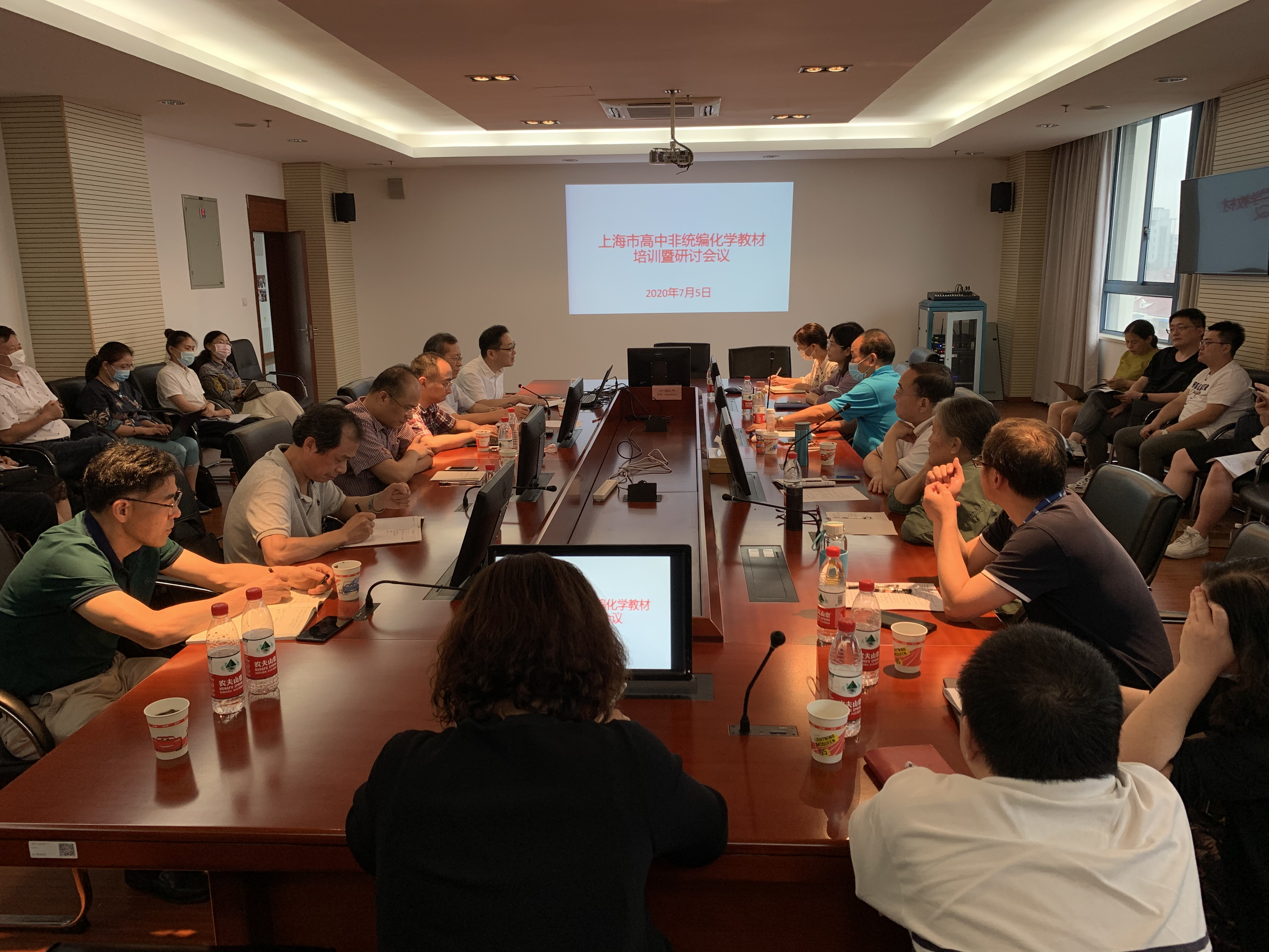 2020年7月5日,根据上海市教委的工作部署,为使上海高中非统编化学教材的培训更加有效,上海市高中化学教材编写团队在上财附属北郊高中召开了为期一天的“第一阶段非统编化学教材培训会”,教材编写核心团队、市区教研员、部分骨干教师和上海科学技术出版社编辑等参加了培训和研讨活动,共同为新课程、新教材的实施做好准备工作。