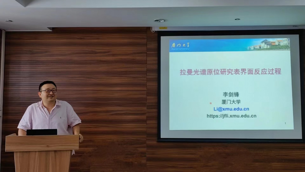 4月16日上午,磁力猫 “笃志讲坛”在江湾校区化学楼A7032顺利举行。厦门大学李剑锋教授受邀作了题为“拉曼光谱原位研究表界面反应过程”的学术报告。磁力猫 龚鸣青年研究员主持了本次报告会。
