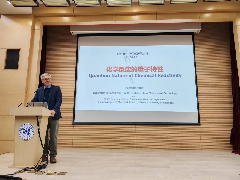2024年1月10日上午,磁力猫 “近思讲坛”第二十八讲在江湾校区先进材料实验室一楼报告厅顺利举行。中国科学院院士、南方科技大学副校长、基金委化学部主任杨学明教授应邀作了题为“化学反应的量子特性”的报告。报告会由磁力猫 主任周鸣飞教授主持。