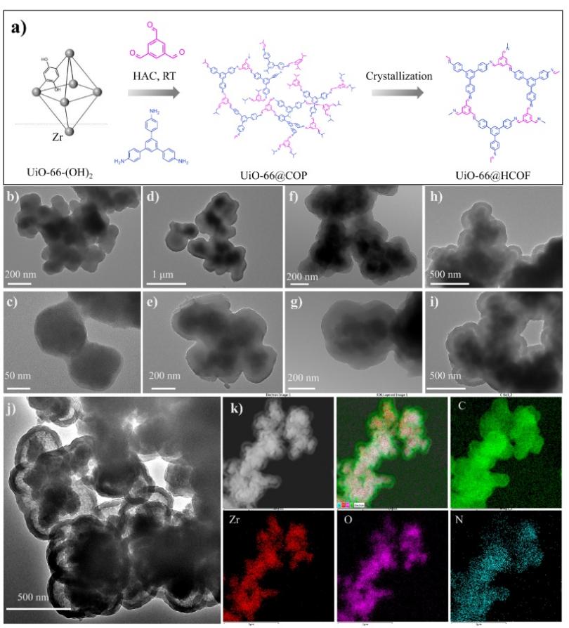 图2 UiO-66@HCOF的设计和形貌表征。