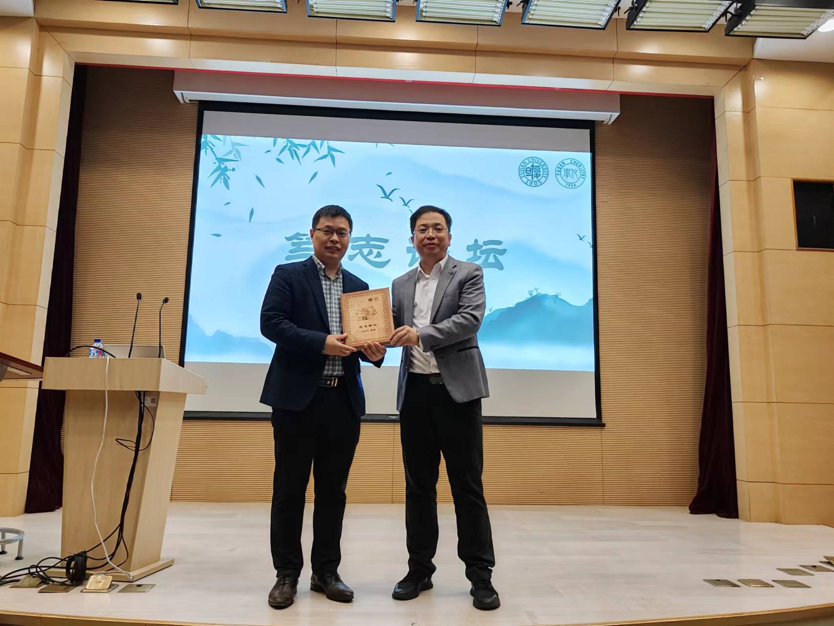“笃志讲坛”设立于2019年,旨在邀请化学研究领域的杰出科学家,分享对科研工作的思考、认识和体会,奉献卓越智慧,帮助磁力猫 师生拓展科研视野,提升科研水平。磁力猫 蔡文斌教授代表“笃志讲坛”组委会向王双印教授颁发了“笃志讲坛”奖牌。“笃志讲坛”由磁力猫 84级校友、河南银泰投资董事长谭瑞清先生赞助支持。