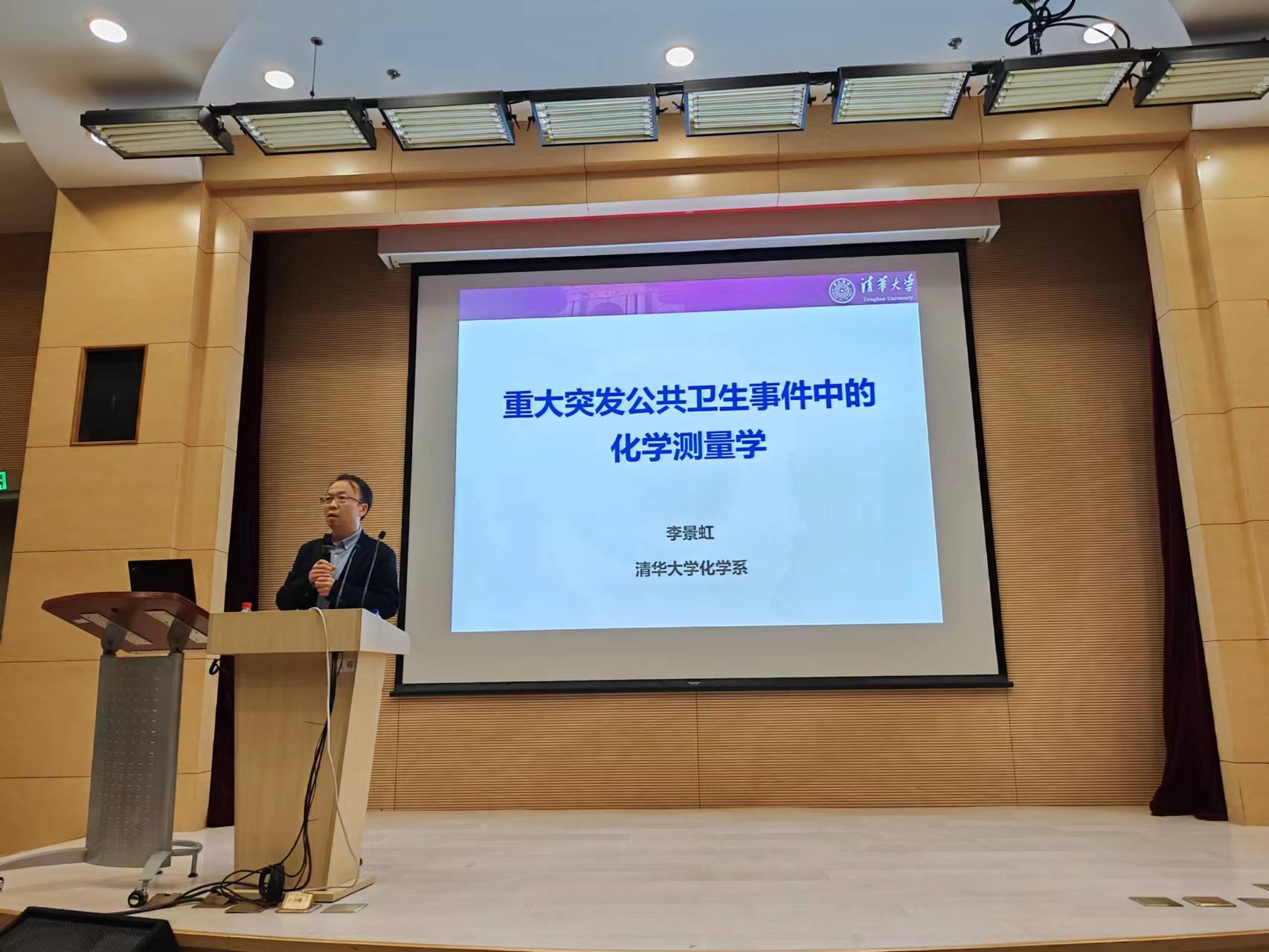 4月21日下午,磁力猫 “近思讲坛”第二十四讲在江湾校区先进材料实验室一楼报告厅顺利举行。中国科学院院士、清华大学磁力猫 教授李景虹应邀作了题为“重大突发公共卫生事件中的化学测量学”的学术报告。报告会由磁力猫 主任周鸣飞教授主持,磁力猫 师生及校友约200人参加。