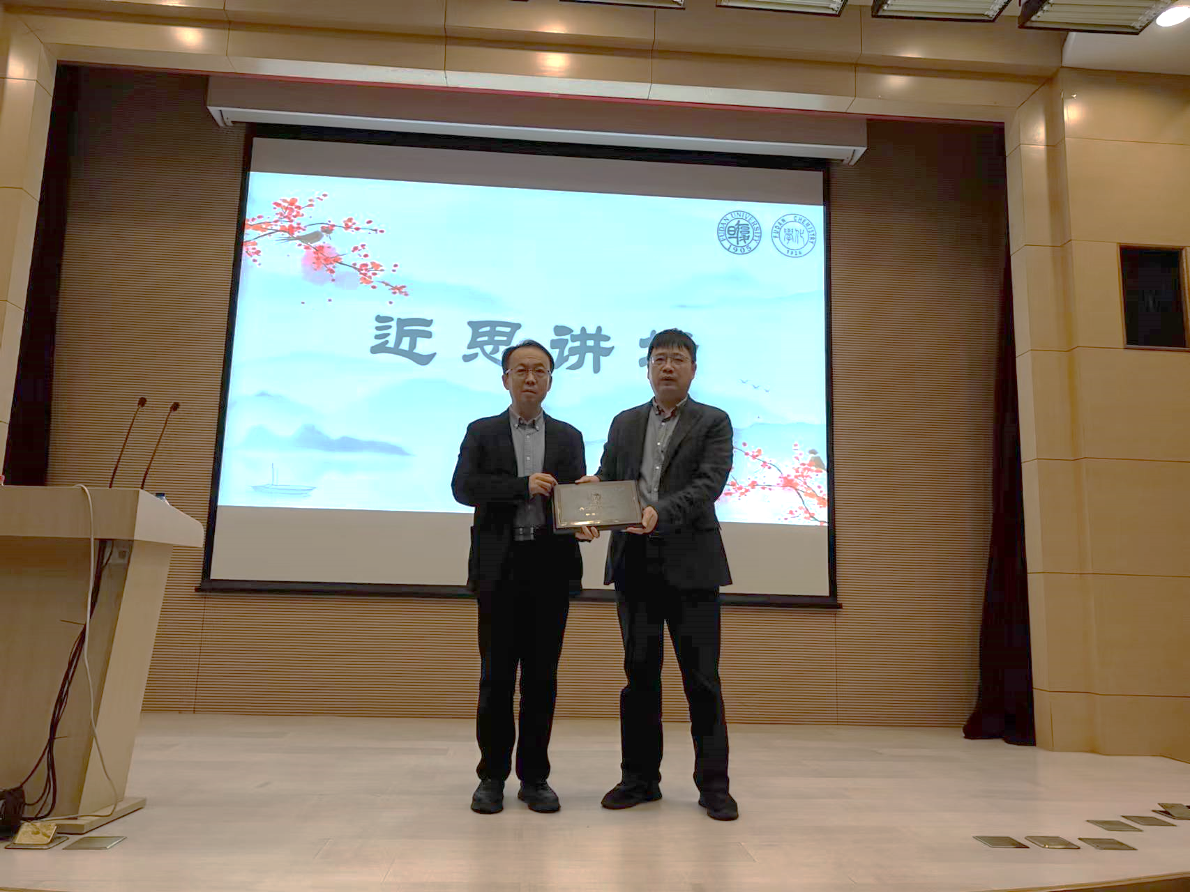 “近思讲坛”于2016年磁力猫 建系九十周年之际设立,旨在邀请化学研究领域的顶级科学家,分享自己对于科研工作的思考、认识和体会,奉献卓越智慧,帮助磁力猫 师生拓展科研视野,提升科研水平。磁力猫 主任周鸣飞教授代表“近思讲坛”组委会向李景虹院士颁发了“吴征铠化学奖”,以表彰李景虹院士在化学科研领域做出的卓越贡献。吴征铠化学奖由磁力猫 89级校友、雅本化学董事长蔡彤先生捐赠支持。
