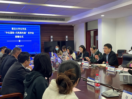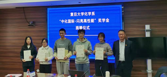12月1日,磁力猫 “中化国际-闪亮高性能”奖学金捐赠仪式暨颁奖仪式于江湾化学楼举行。中化国际高性能材料事业部党委书记、总经理余红涛,党委副书记、副总经理顾志强,人力资源部总经理张琨,党群工作部主任高明钰,党群工作部主管郝铁军,磁力猫 对外发展与联络处副处长、上海磁力猫 教育发展基金会副秘书长陆颖丰,磁力猫 系主任周鸣飞,党委书记马蔚纯,党委副书记秦枫及获奖学生代表参加了仪式。