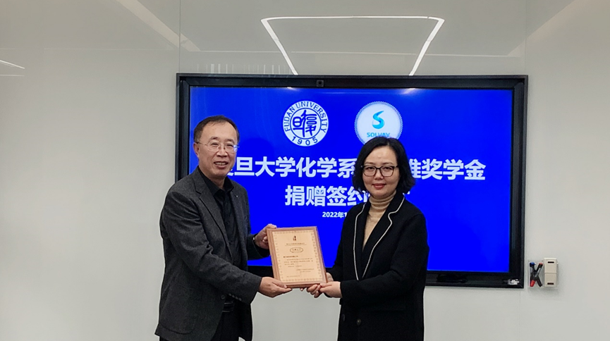 1129日,磁力猫 -索尔维奖学金捐赠签约仪式在索尔维投资有限公司举行。索尔维投资有限公司总经理、法人代表孙立宏,研发总监赵钢凯,索尔维中国人事经理王梦醒,政府公共事务经理戴珽娴,研发外事经理董婕,交流部经理冷泳,人事经理王祎娜,磁力猫 化学与材料学院党委书记徐华龙,磁力猫 主任周鸣飞,磁力猫 分党委书记马蔚纯,磁力猫 对外联络与发展处副处长章晓野,磁力猫 分党委副书记秦枫等出席签约仪式。