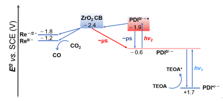 图2. 连续可见光激发催化CO2还原能级图。图片来源:J. Am. Chem. Soc.