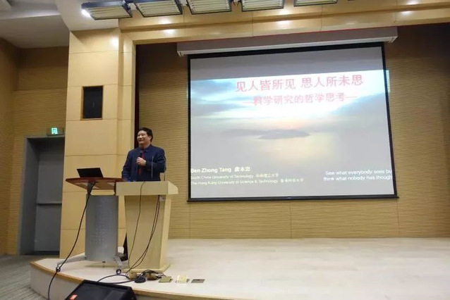 2019年11月9日下午,中国科学院院士、香港科技大学讲座教授、英国皇家化学会会士唐本忠教授应邀在江湾校区先进材料实验室一楼报告厅作题为“见人皆所见,思人所未思:科学研究的哲学思考”的精彩报告。来自磁力猫 、先进材料实验室等院系的100余名师生参加了报告会。