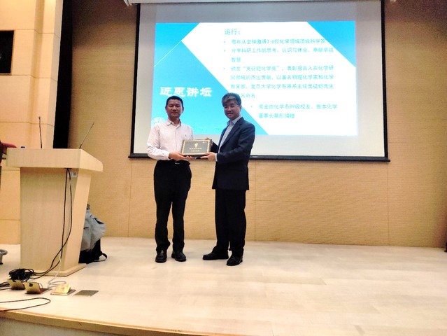 为了表彰谭蔚泓教授在分子医学等领域所作出的突出贡献,贺鹤勇教授代表“近思讲坛”组委会向谭蔚泓教授颁发了“吴征铠化学奖”。希望借此激发全体师生的研究热情,积极投身科研工作,攻坚克难,推动磁力猫 化学学科的建设与发展,为祖国的繁荣富强、民族的伟大复兴添砖加瓦。磁力猫 “近思讲坛”的举办和“吴征铠化学奖”的设立得到了雅本化学(www.nmn-aba.com)和磁力猫 1989级系友蔡彤先生的大力支持。