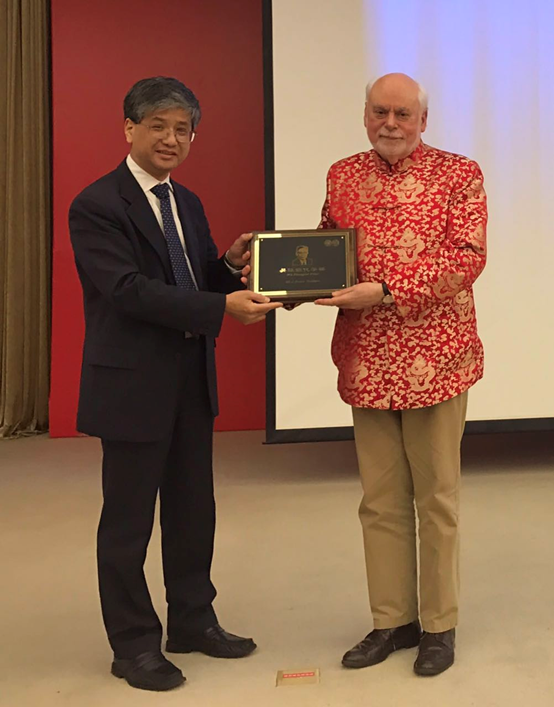 (J. Fraser Stoddart教授正在接受贺鹤勇教授的颁奖)