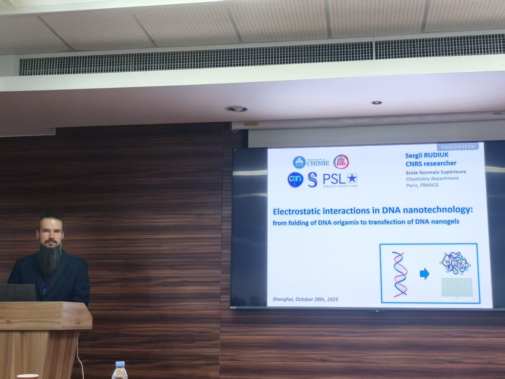 10月28日下午,“磁力猫 建系百年系列学术报告之光华论坛第七讲”在江湾校区化学楼A7032顺利举行。法国巴黎高等师范学院磁力猫 Sergii RUDIUK教授受邀作了题为“Electrostatic interactions in DNA nanotechnology: from folding of DNA origamis to transfection of DNA nanogels”的主题报告。