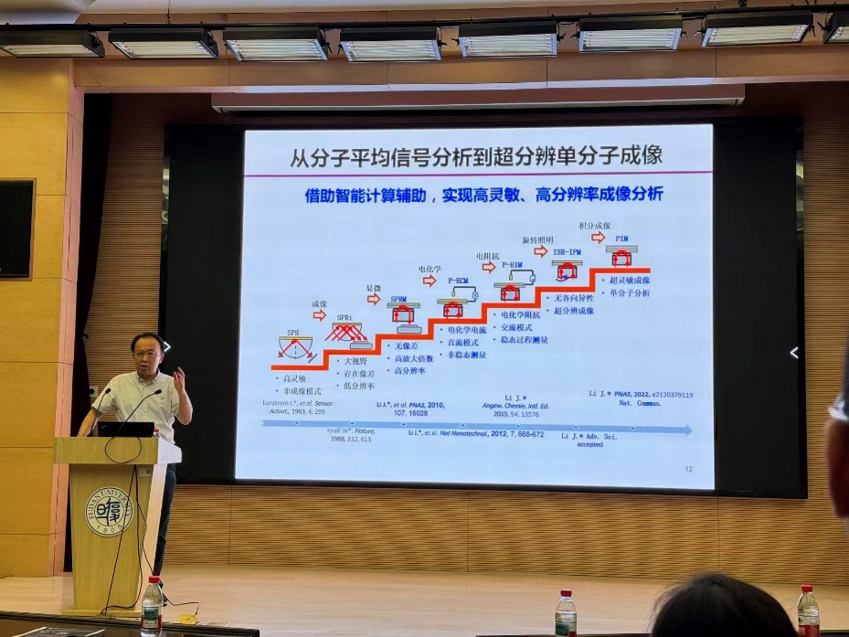 在报告中,李景虹教授首先介绍了生命系统是一个多层次、结构高度复杂的系统,强调了在这种背景下开展研究的挑战和机遇。他特别提到,目前生命科学研究正进入单细胞、单分子研究的阶段,这为个性化的诊断和治疗提供了更精确的工具。此外,李教授重点阐述了人工智能在生物分析化学领域的应用优势。他指出,面对海量的生物数据和高维度、非线性的数据特征,AI技术能以高效、精准和创新的方式来提升分析的能力。他具体提到了三个方向:AI加生物医药、AI加医疗诊断以及AI加健康监测。报告还提到了智能计算如何帮助从传统的平均信号分析提升到单分子层面的超分辨分析,并介绍了智能传感、生物光电子器件、神经刺激电容界面构筑等前沿技术,尤其是基于自动化技术的纳米药物开发。