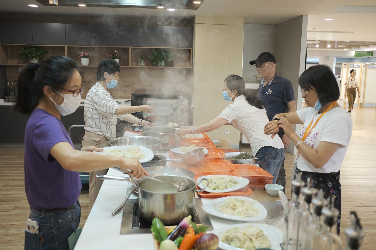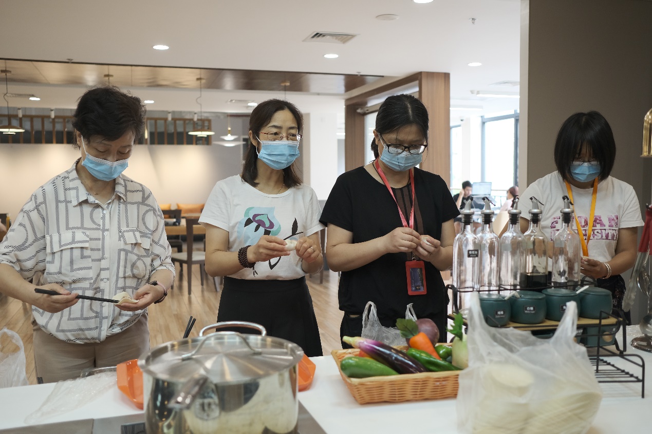 邯郸校区工会小组的教师们,则在北区食堂二楼美食体验区开展了包饺子,擀皮、拌馅、煮饺子,看似日常家务,可由于和自己亲密的同事一起动手,分工合作,别有一番体验。老师们在活动中既体验了生活的乐趣,又搭建了彼此沟通交流的平台,在紧张工作之余,释放压力,愉悦心情,共同度过了一个轻松、快乐的教师节。