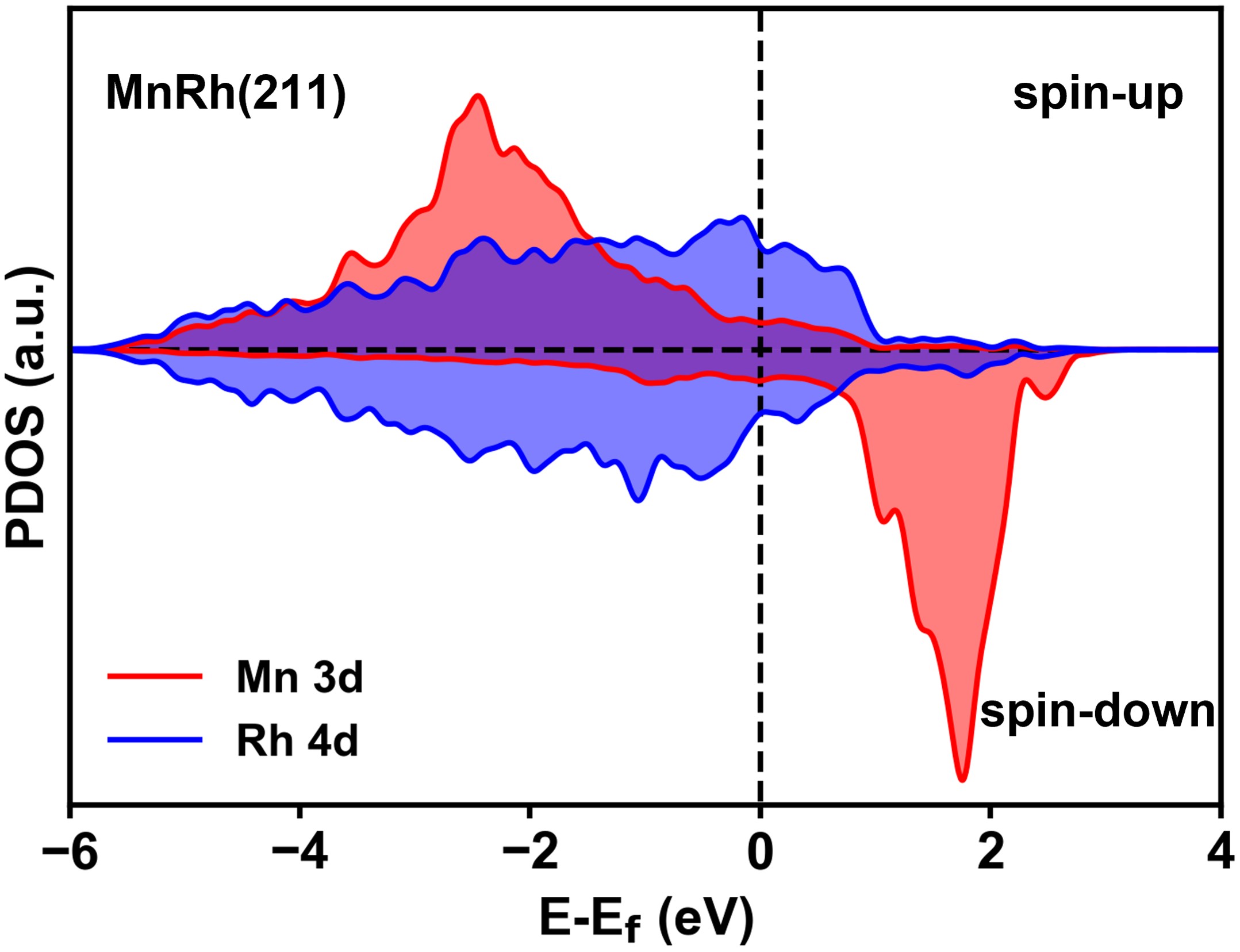 图4:0.17-0.17 ML(b) MnRh(211)台阶位点上的金属原子的投影态密度。