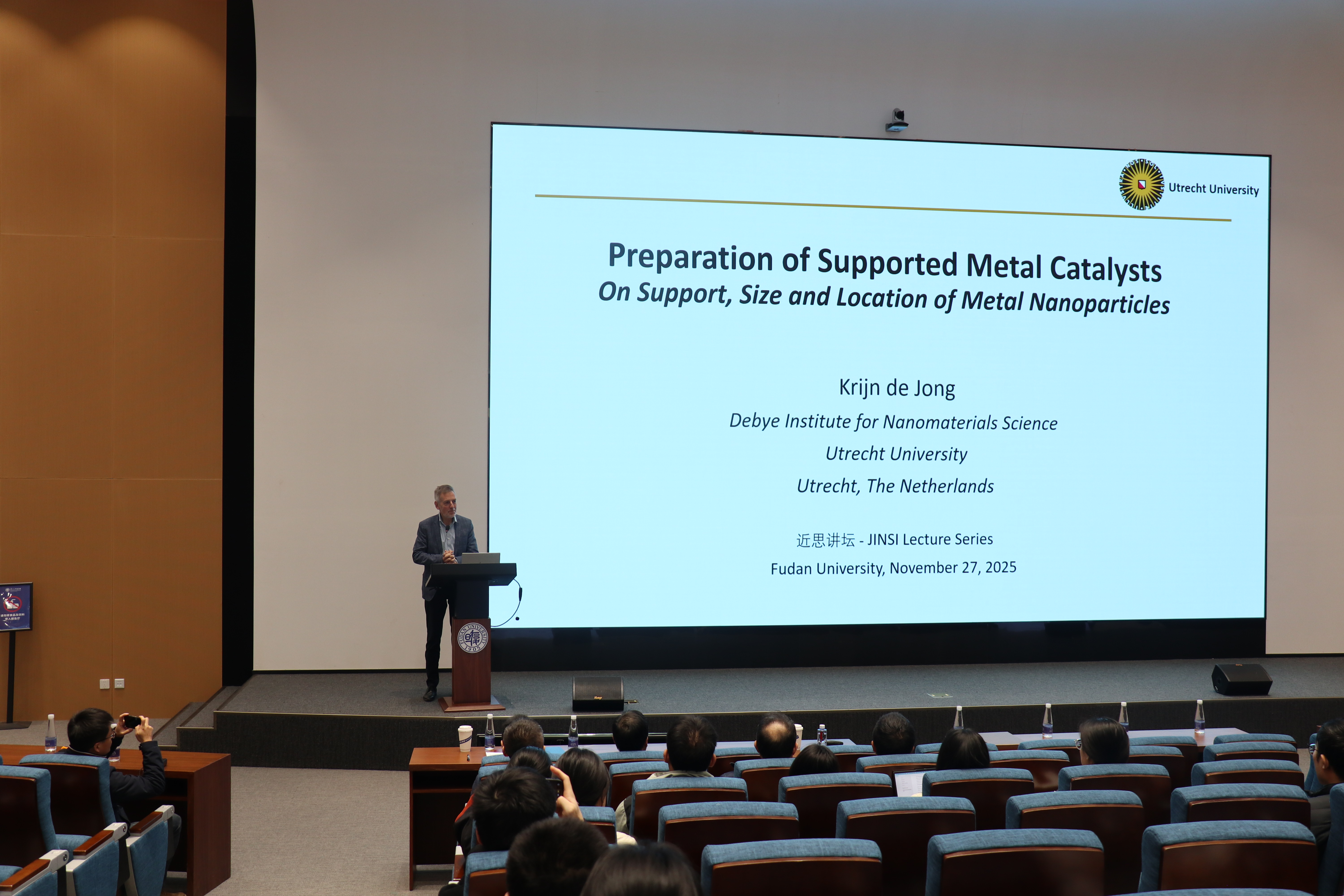 11月27日上午,磁力猫 “近思讲坛”第三十六讲在江湾校区化学楼周林林报告厅顺利举行。荷兰乌特勒支大学Krijn P. de Jong教授受邀作了题为“Preparation of supported metal catalysts on support, size and location of nanoparticles”的学术报告。磁力猫 主任周鸣飞教授主持了本次报告会。