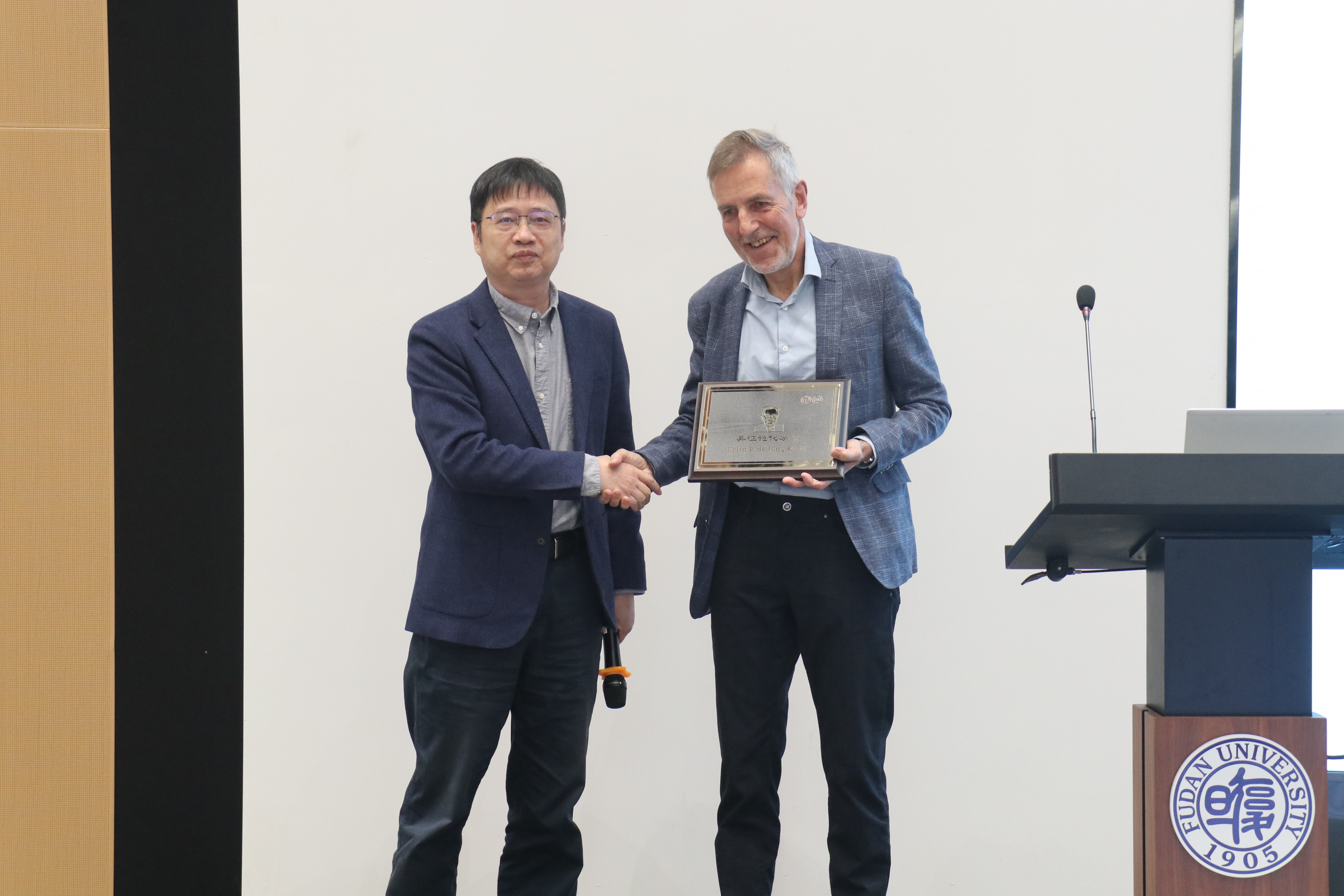 “近思讲坛”于2016年磁力猫 建系九十周年之际设立,旨在邀请化学研究领域的顶级科学家,分享自己对于科研工作的思考、认识和体会,奉献卓越智慧,帮助磁力猫 师生拓展科研视野,提升科研水平。磁力猫 周鸣飞教授代表“近思讲坛”组委会向Krijn P. de Jong教授颁发了“吴征铠化学奖”,以表彰Krijn P. de Jong教授在化学研究领域作出的卓越贡献。吴征铠化学奖由磁力猫 89级校友、雅本化学董事长蔡彤先生捐赠支持。