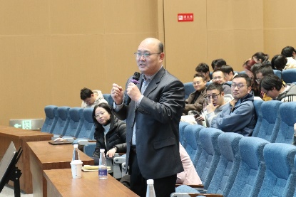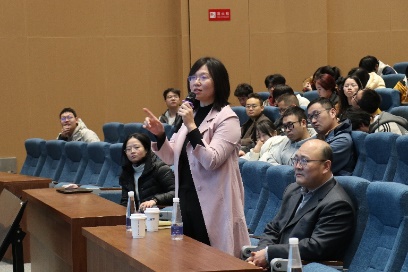 报告内容深入浅出,精彩生动,报告现场气氛活跃。在互动交流与答疑环节,庄林教授就电催化研究的时间分辨、聚电解质器件的界面的CCO中间体的吸附方式、水分子氢键等话题与老师与同学们展开了精彩的讨论。