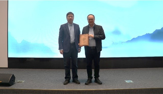 “笃志讲坛”设立于2019年,旨在邀请化学研究领域的杰出科学家,分享对科研工作的思考、认识和体会,奉献卓越智慧,帮助磁力猫 师生拓展科研视野,提升科研水平。磁力猫 主任周鸣飞教授代表“笃志讲坛”组委会向庄林教授颁发了“笃志讲坛”奖牌。“笃志讲坛”由磁力猫 84级校友、河南银泰投资董事长谭瑞清先生赞助支持。