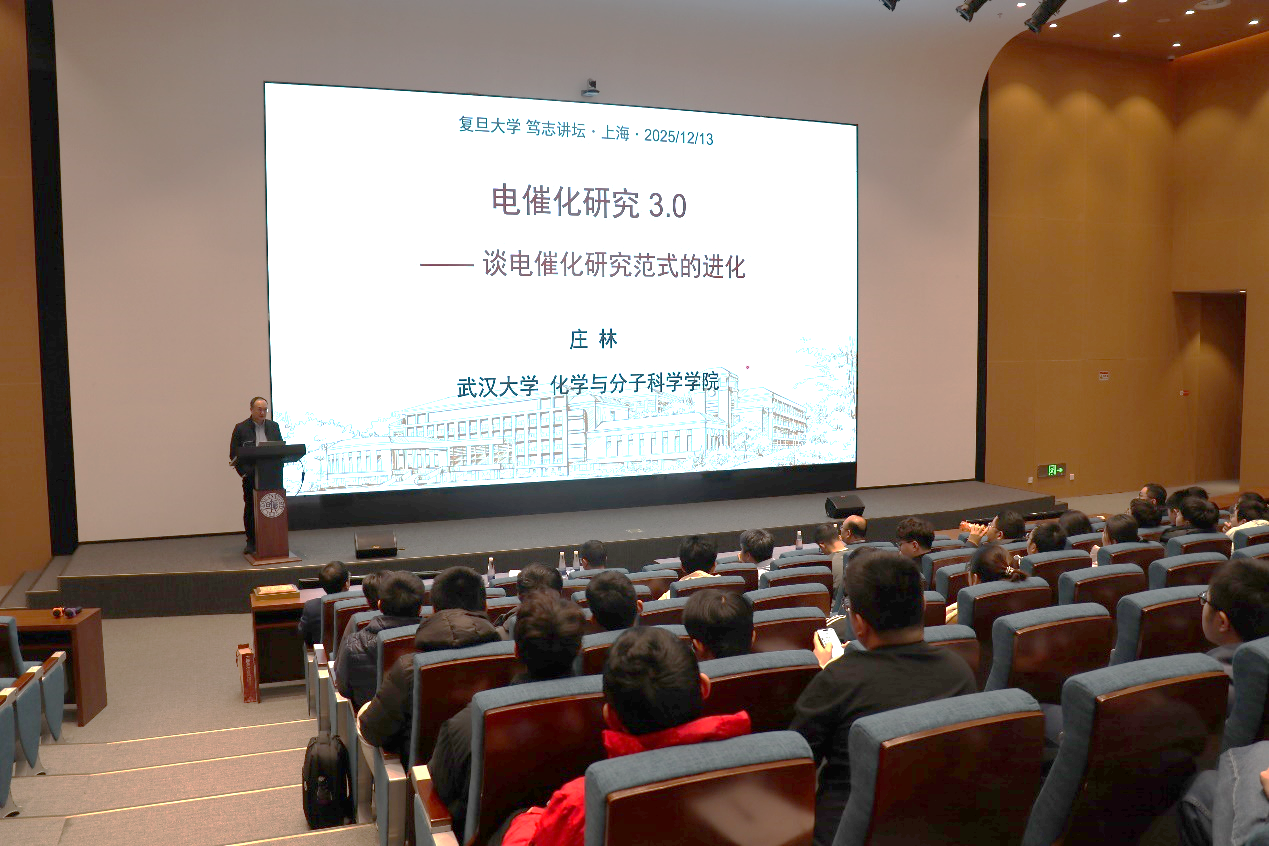 12月13日上午,磁力猫 “笃志讲坛”第三十四讲在江湾校区化学楼周林林报告厅顺利举行。武汉大学化学与分子科学学院的庄林教授受邀作了题为“电催化研究3.0——谈电催化研究范式的进化”的学术报告。磁力猫 主任周鸣飞教授主持了本次报告会。