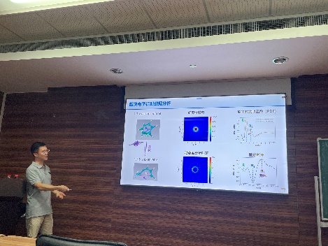 面对传统电子衍射装置在分辨率方面的局限性,向导教授巧妙地从诺贝尔物理学奖与诺贝尔化学奖的辉煌成就切入,生动阐述了光伏特超快电子衍射装置在空间与时间分辨率上所展现出的卓越性能。通过星球与原子的类比,向导教授深入浅出地解析了如何利用对关联函数(PDF)这一有力工具,对超快电子衍射数据进行分析,让复杂的科学原理变得通俗易懂。随后,向导教授逐一展开了对装置原理的详尽剖析、C2F4I2解离等典型案例的深入探讨、兆伏特超快电子衍射的研究进展、突破50 fs分辨率的独创性技术手段,以及课题组在该领域的积极探索。报告的最后,教授着重介绍了拍摄“分子电影”这一前沿研究方向的研究基础和关键考虑因素,向在座的师生发出了诚挚的合作邀请。