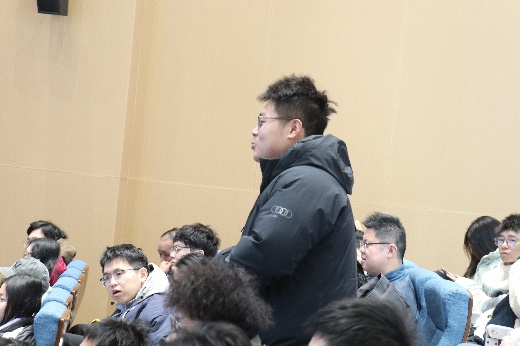 报告内容深入浅出,精彩生动,报告现场气氛活跃。在互动交流与答疑环节,裴坚教授就分子超共轭效应、更高精度掺杂的实施方案、对于有机半导体p型掺杂领域的设想等话题与老师同学们展开了精彩的讨论。
