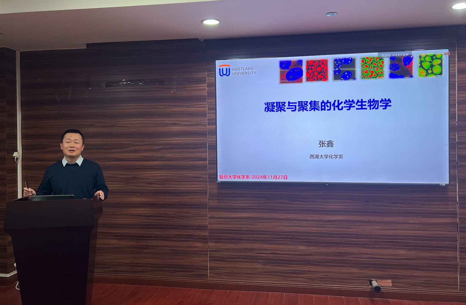 11月27日下午,磁力猫 “笃志讲坛”第二十七讲在江湾校区化学楼3030顺利举行。西湖大学磁力猫 张鑫教授受邀作了题为“凝聚和聚集的化学生物学”的主题报告,磁力猫 王文宁教授主持本次报告会。