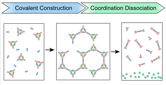 A new metal–organic framework (MOF) with both coordination linkages and covalent linkages is prepared by coordinating CuI with pyrazolate for an aldehyde‐functionalized trinuclear complex, and subsequent imine condensation with p‐phenylenediamine, a reaction typical for covalent organic framework (COF) synthesis. This MOF×COF collaboration yields FDM‐71 with honeycomb layers stacked in eclipsed fashion. After dissociating the CuI‐pyrazolate coordination in FDM‐71, the obtained organic components carry the information of structural defects, and thus vacancy identity (aldehyde‐based unit vacancy and amine‐based unit vacancy) and concentration are definitely resolved. Further to the redox catalytic activity inherited from the complex, FDM‐71 features effective photosensitizing activity. The two functions integrated in one well‐defined structure is demonstrated by its high efficiency in decomposing H2O2 and consequent excitation of O2 to reactive oxygen species.