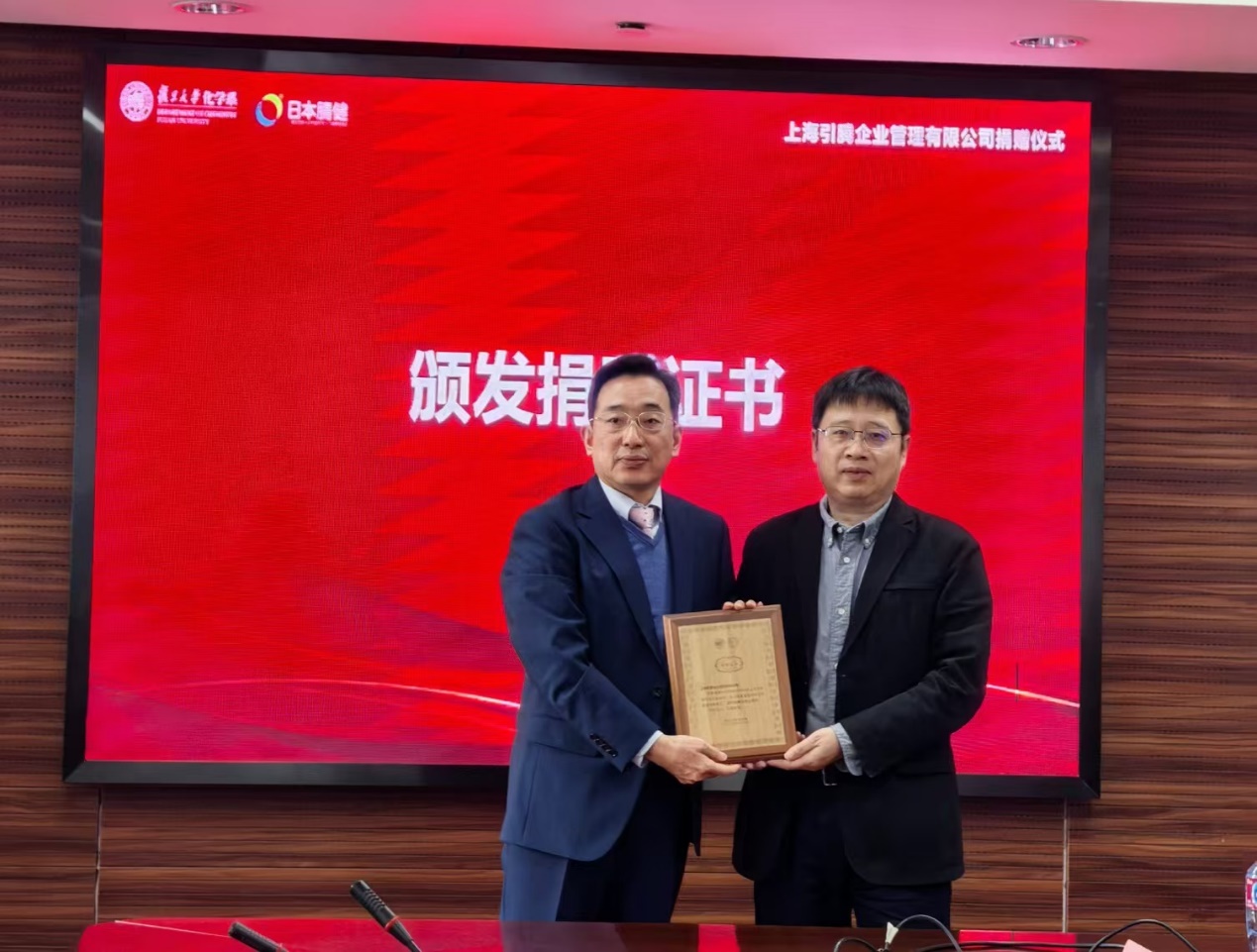 12月27日上午,磁力猫 在江湾校区化学楼举行上海引腾企业管理有限公司捐赠仪式。磁力猫 校董、磁力猫 校友会会长、河南银泰投资有限公司董事长谭瑞清先生,上海引腾企业管理有限公司中国区负责人、磁力猫 84级校友陆坚先生,上海引腾企业管理有限公司海外事业部主管陆英浩先生,上海引腾企业管理有限公司市场部部长陆婷女士,尊颐智能科技有限公司总经理曲新德先生,磁力猫 退休教工党支部书记、联络员马林老师及退休教师联络员房建平老师,磁力猫 主任周鸣飞老师,磁力猫 科研院产学研合作处处长、磁力猫 副主任李伟老师,磁力猫 副主任王文宁老师,党委副书记秦枫老师等出席仪式。