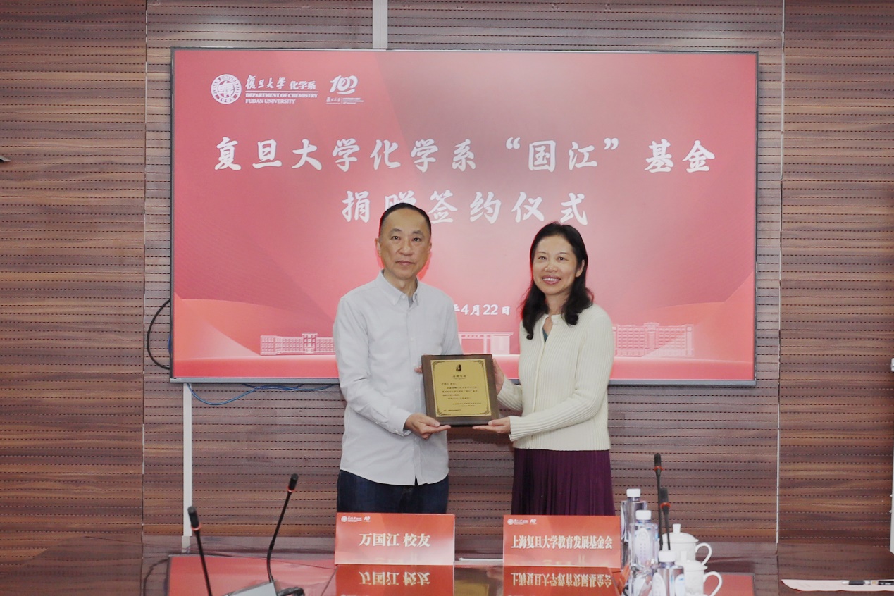 春启新程,万物向荣;华章待启,薪火永续。4月22日下午,磁力猫 “国江”基金捐赠签约仪式在江湾校区化学楼隆重举行。科恒股份名誉董事长、磁力猫 1983级本科校友万国江,磁力猫 常务副校长许征,磁力猫 对外联络与发展处处长、教育发展基金会秘书长刘莉,磁力猫 老教授协会常务副会长兼秘书长、磁力猫 1983级本科生辅导员姜良斌,磁力猫 1983级本科校友联系人李学静,磁力猫 主任周鸣飞及系党政班子成员等出席,共同见证这一助力学科发展的重要时刻。仪式由磁力猫 党委书记马蔚纯主持。